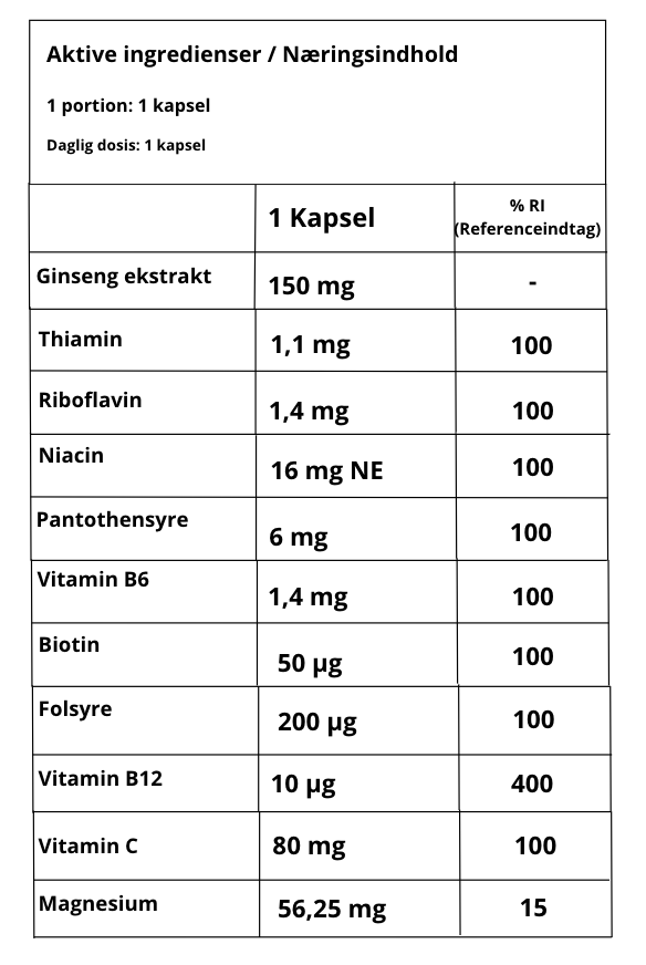 Ekstraktet er standardiseret til 4 % ginsenosider for at sikre ensartet kvalitet og indhold i hver kapsel.