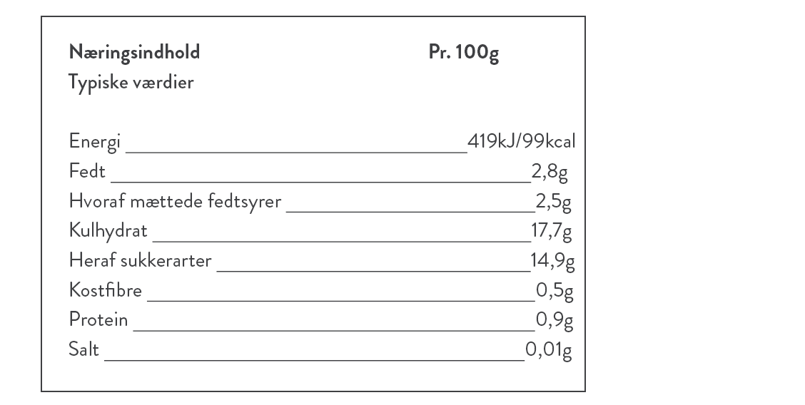 - Ingen tilsætningsstoffer, konserveringsmidler og kunstige smagsstoffer