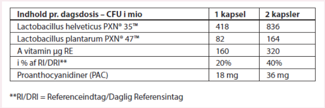 Tranebærekstraktet er standardiseret til et bestemt indhold af proanthocyanidiner (PAC), og A-vitamin bidrager til at vedligeholde normale slimhinder.