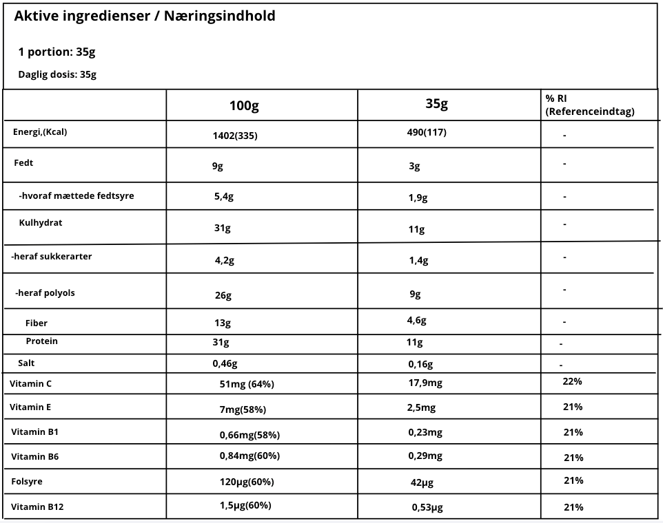 Denne bar indeholder højkvalitets mælkprotein, kostfibre og en række essentielle vitaminer, så du får mere end bare protein i hver bid. Med et moderat energiindhold er den velegnet som mellemmåltid, når du har brug for noget lækkert, men stadig funktionelt.