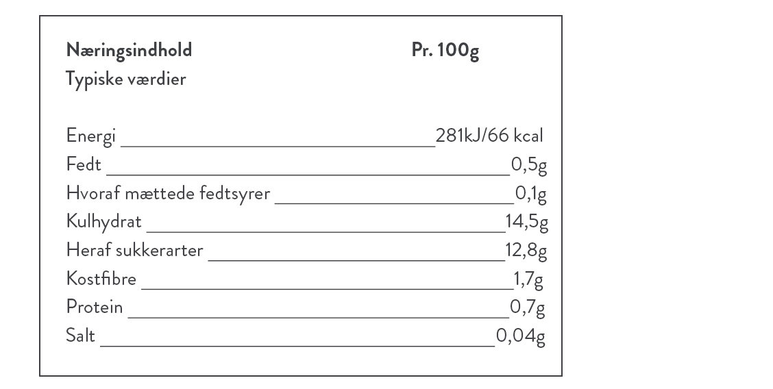 - Ingen tilsætningsstoffer, konserveringsmidler og kunstige smagsstoffer