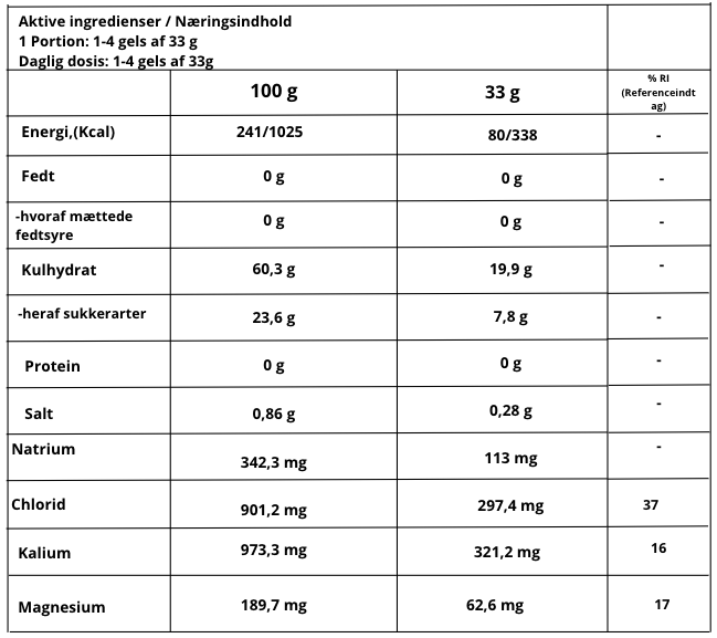 Puls Electrolyte + Energy Gel kombinerer hurtigt tilgængelige kulhydrater med vigtige elektrolytter i en praktisk gel, så du nemt kan tilføre både energi og mineraler under fysisk aktivitet eller i perioder med øget energibehov. Gelen er let at have med på farten og kan tages uden væske, så du kan få et hurtigt tilskud af energi og elektrolytter, når det passer dig — fx før, under eller efter træning, lange ture eller andre aktiviteter.