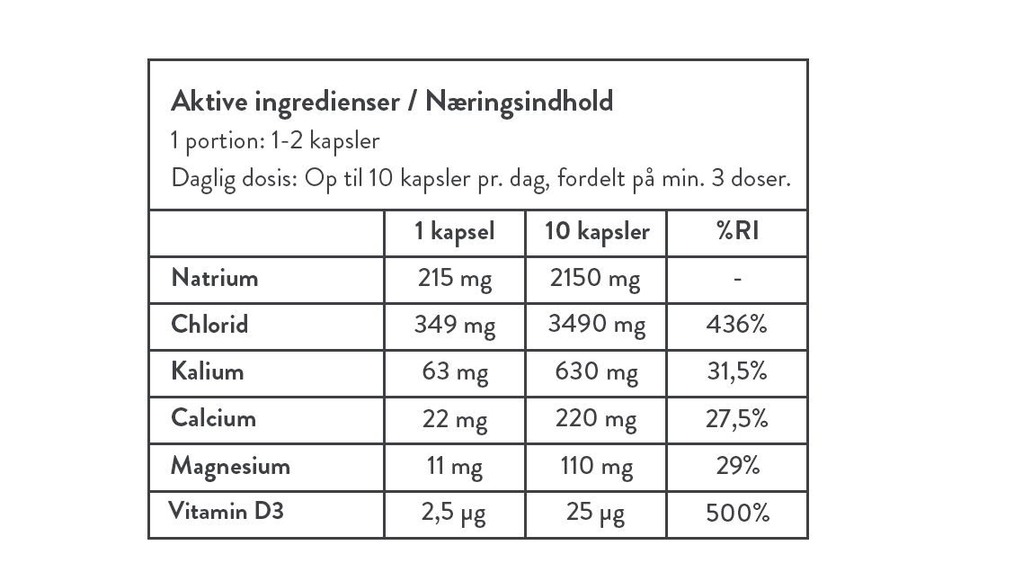 - Praktisk Dosis: Tag 1-2 kapsler hver time under aktivitet for at modvirke træthed og kramper.