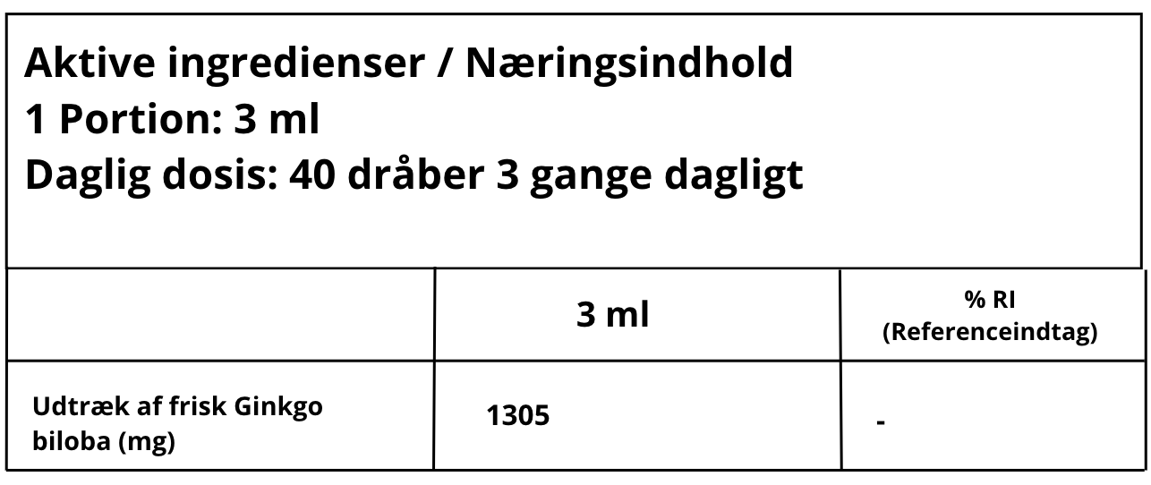 Produktet indgår som en del af din daglige kost, når du ønsker et plantebaseret supplement med ekstrakt fra Ginkgo Biloba-blade uden unødige tilsætningsstoffer. Det er udviklet som en praktisk og flydende løsning i dråbeform, som let kan indtages sammen med vand efter behov.