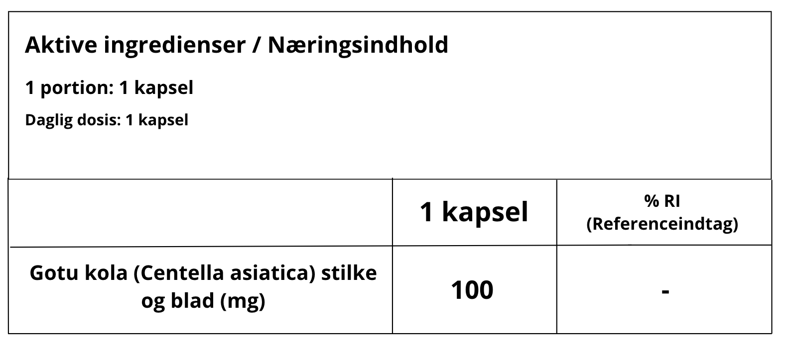 Solgar® Gotu Kola indeholder ekstrakt af gotu kola-blade (Centella asiatica), en traditionel ayurvedisk urt, der har været anvendt i århundreder i Østen. Planten er naturligt rig på glycosider og triterpenoider – planteforbindelser, der findes i de tørrede blade.