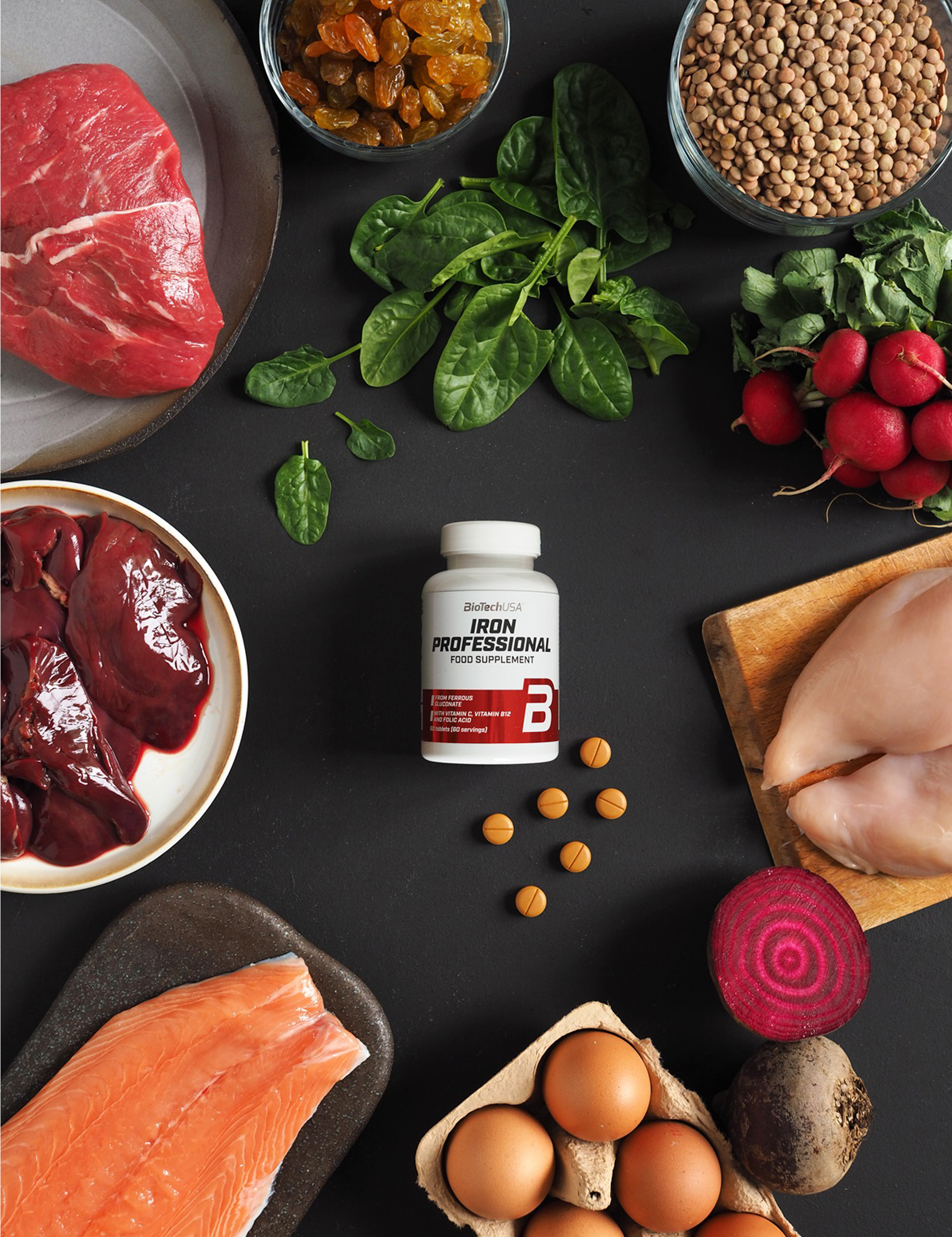 Vil du støtte kroppen med et dagligt tilskud af jern og vigtige vitaminer? BioTechUSA’s Iron Professional kombinerer jern med C-vitamin, folsyre og vitamin B12 – alt sammen i en praktisk tablet, der er let at indtage.