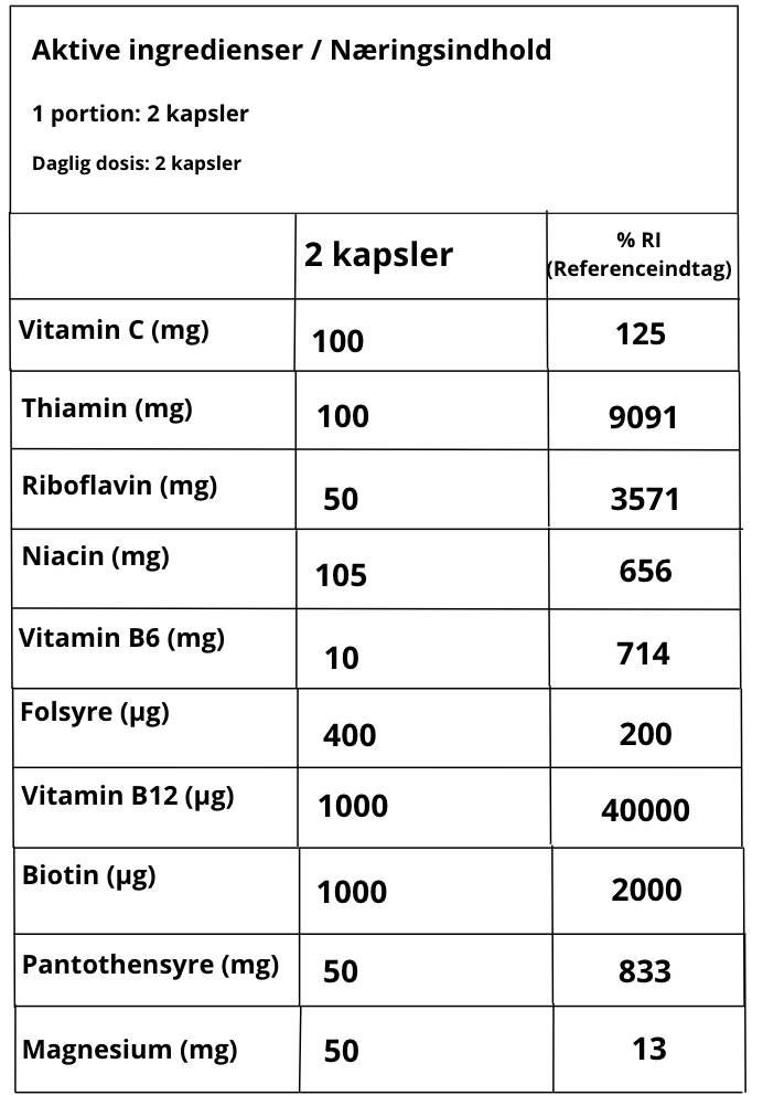 Tilskuddet er skabt til dig, der i en travl hverdag ønsker ekstra støtte til energiniveauet — særligt i perioder, hvor kost, søvn eller belastning kan udfordre kroppens naturlige energiomsætning.