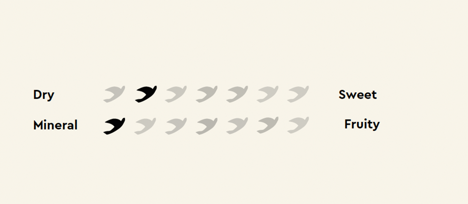 - Frisk Smag: Livlig og syrlig med noter af citrus og grapefrugt.