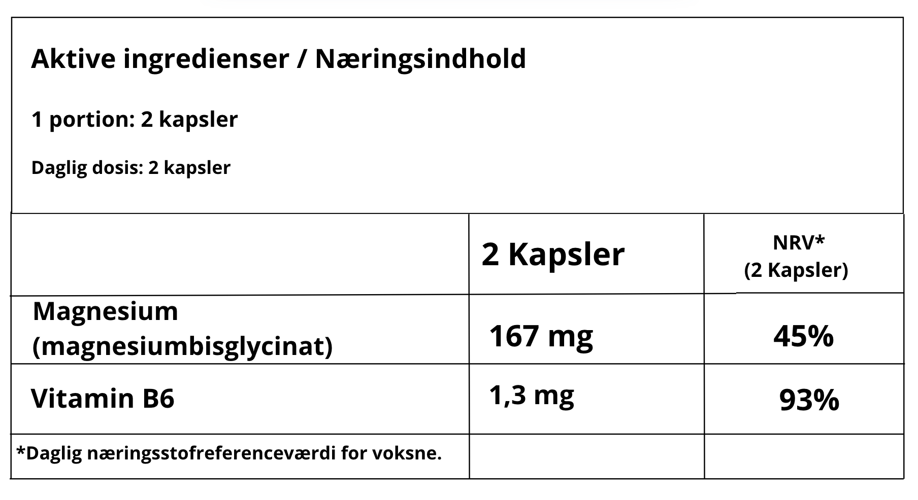 Magnesium i bisglycinat-form – bundet til to glycin-molekyler for bedre optagelse og skånsomhed i fordøjelsen.