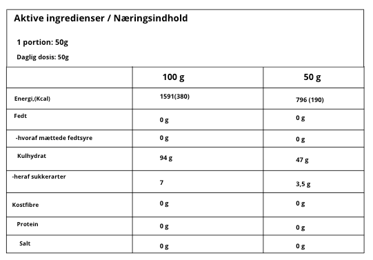 Maltodextrin er let at fordøje og optage, og det er derfor velegnet i træningsdrikke, energiblandinger eller som en energitæt komponent i din kostplan. Uden tilsat smag passer det perfekt til dig, der vil kunne tilpasse dit energiindtag uden unødvendig sødme eller fyldsmag.