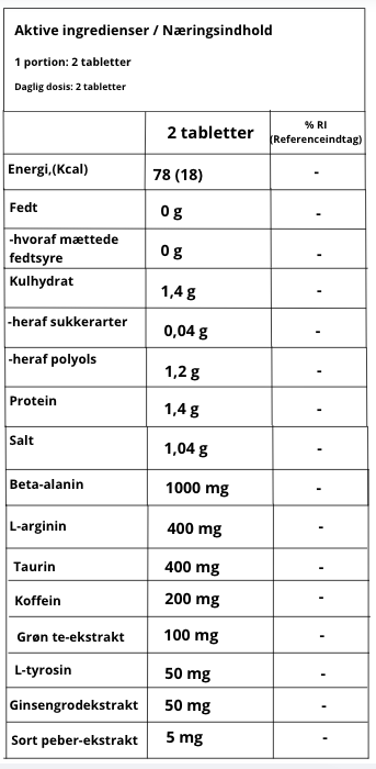 Produktet indeholder en sammensætning af ingredienser som aminosyrer, vegetabilske ekstrakter og koffein, som mange produkter i denne kategori bruger til at understøtte energiniveauet og overskuddet i forbindelse med træning. Det er velegnet til dig, der ønsker en praktisk og velsmagende forberedelse før træningspas uden at gå på kompromis med funktionalitet.