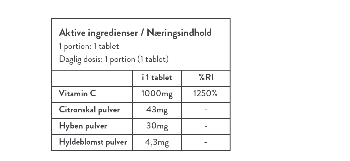- Med tilført hyben, hyldeblomst og bioflavonoider