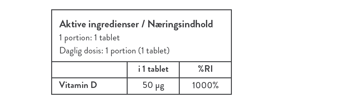 - 50 µg (2000 IU) vitamin D pr. tablet